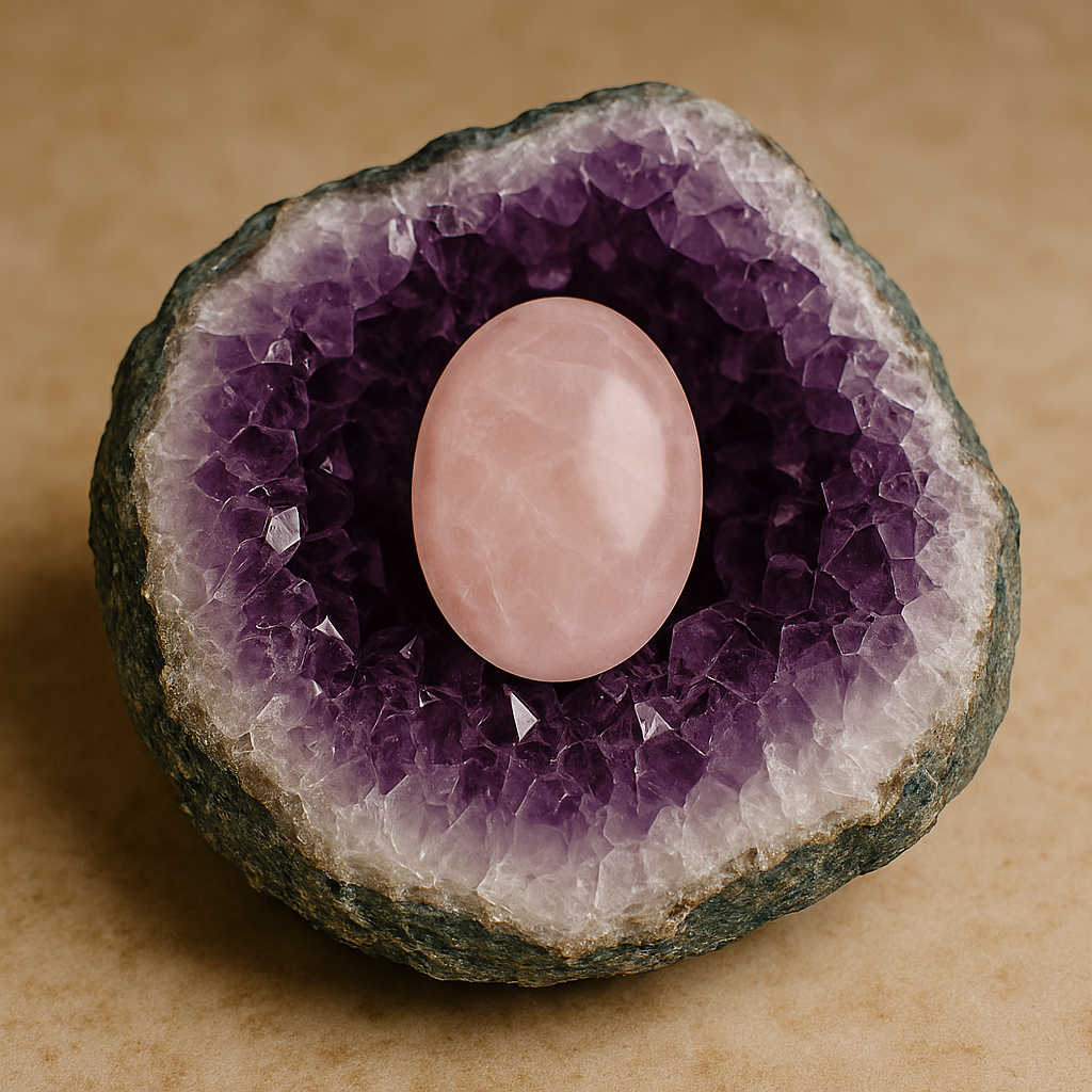 - déposer la pierre à l'intérieur d'une géode (souvent en améthyste ou cristal de roche)
